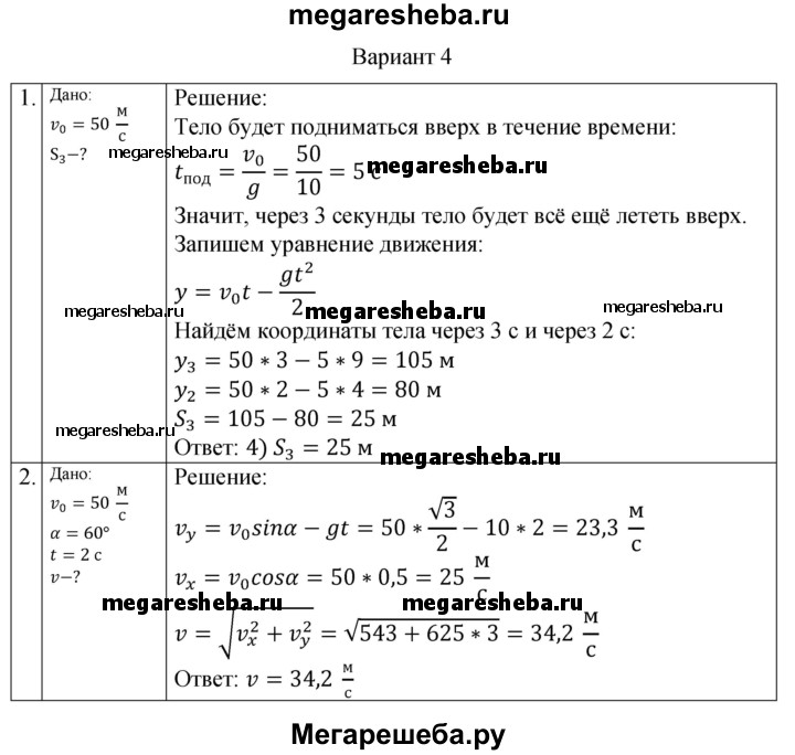 ГДЗ по физике 10 класс Ерюткин самостоятельные и контрольные работы Базовый и углубленный уровень механика кинематика СР-7. вариант - 4