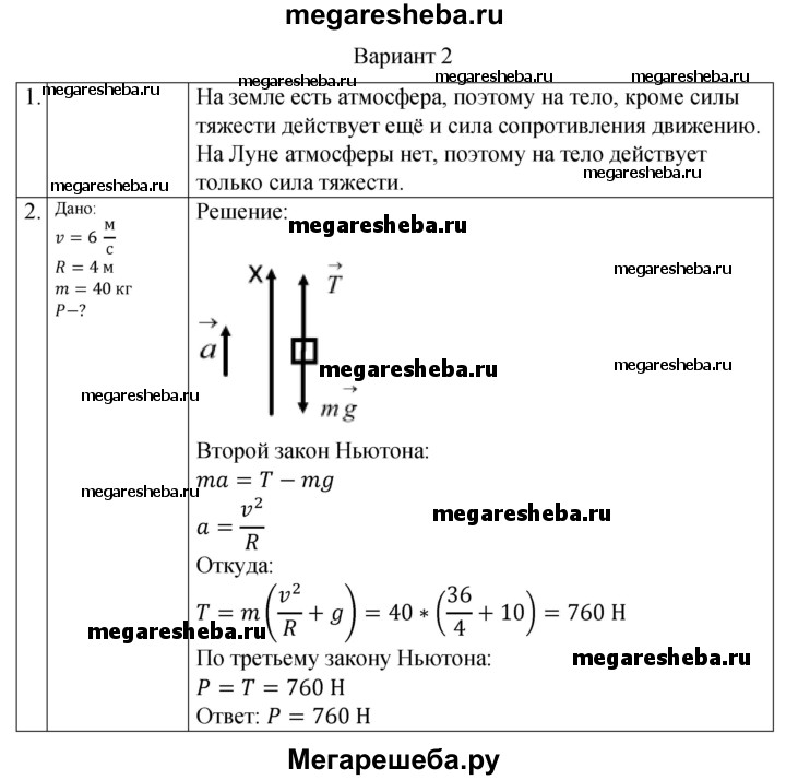 ГДЗ по физике 10 класс Ерюткин самостоятельные и контрольные работы Базовый и углубленный уровень механика динамика СР-7. вариант - 2