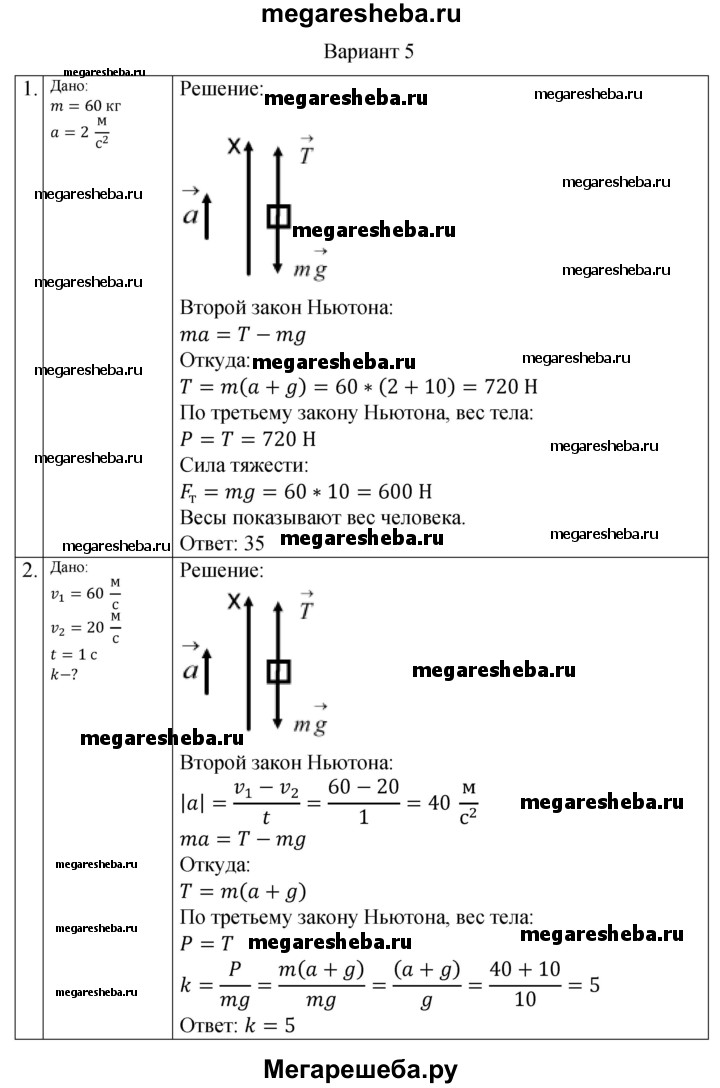 ГДЗ по физике 10 класс Ерюткин самостоятельные и контрольные работы Базовый и углубленный уровень механика динамика СР-7. вариант - 5