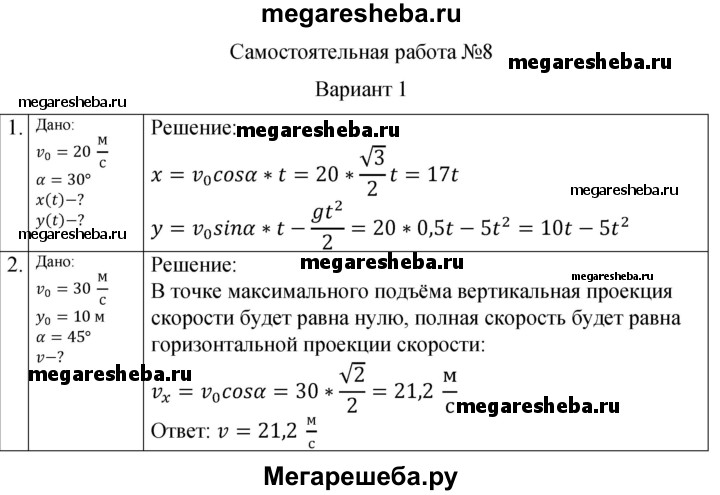 Подробный решебник (ГДЗ) по Физике за 10 (десятый) класс самостоятельные и контрольные работы - готовый ответ механика кинематика СР-8. вариант - 1. Авторы учебника: Ерюткин, Ерюткина, Базовый и углубленный уровень. Издательство: Просвещение 2019.
