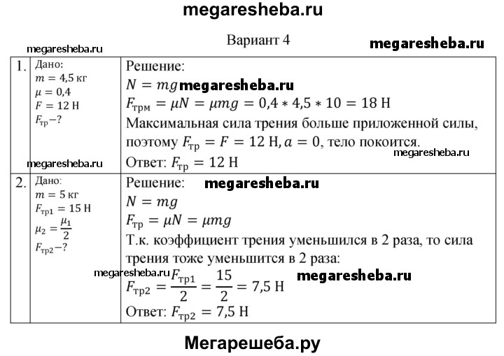 ГДЗ по физике 10 класс Ерюткин самостоятельные и контрольные работы Базовый и углубленный уровень механика динамика СР-8. вариант - 4