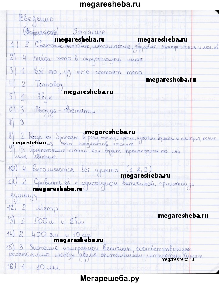 ГДЗ по физике 7 класс Чеботарева тесты тема - Введение
