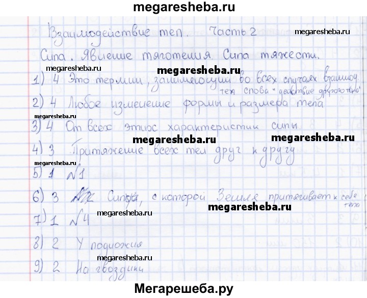 ГДЗ по физике 7 класс Чеботарева тесты тема - Сила