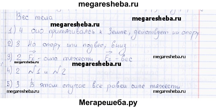 ГДЗ по физике 7 класс Чеботарева тесты тема - Вес тела