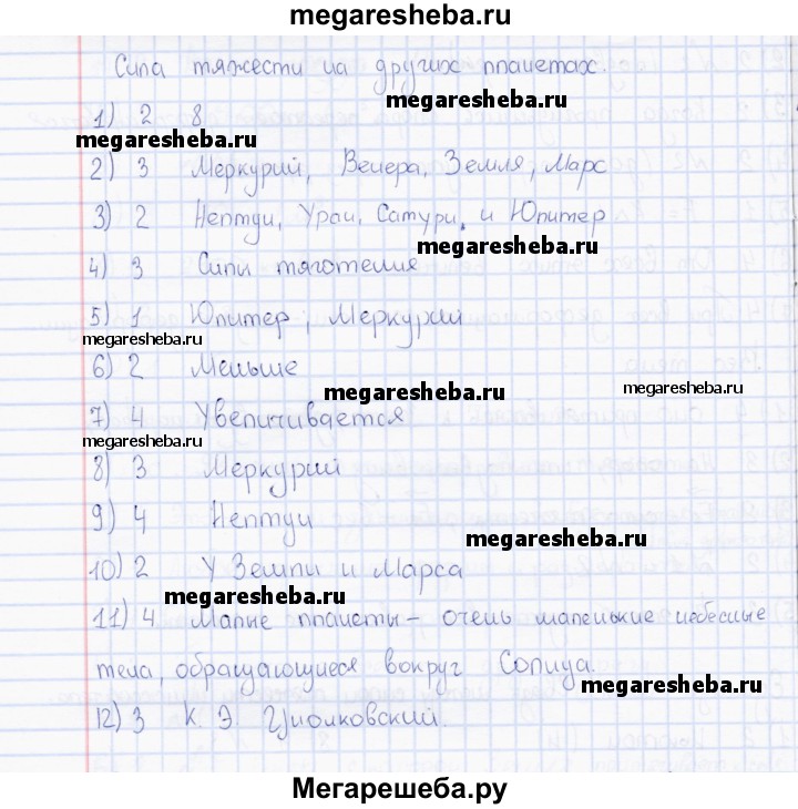 ГДЗ по физике 7 класс Чеботарева тесты тема - Сила тяжести на других планетах