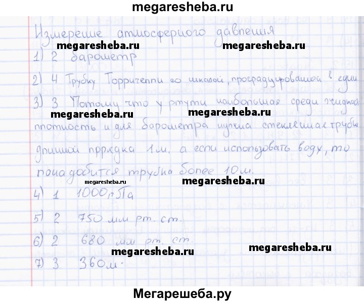 ГДЗ по физике 7 класс Чеботарева тесты тема - Измерение атмосферного давления