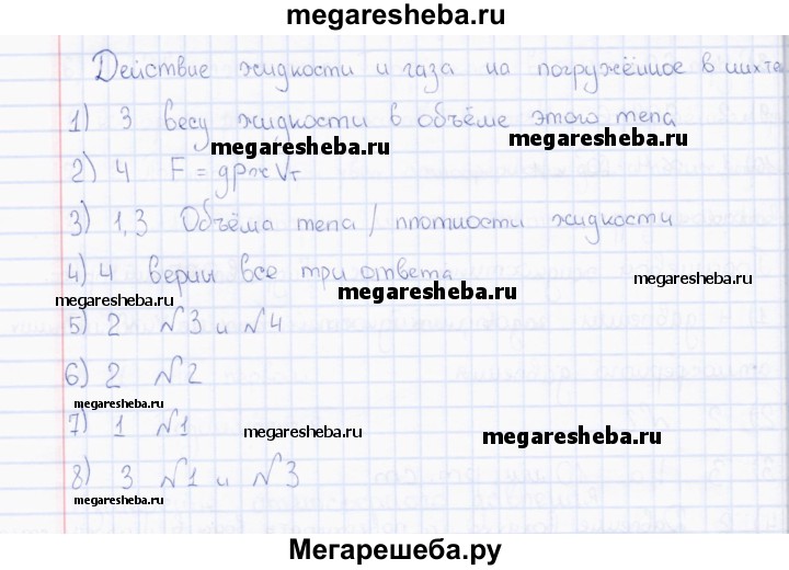 Решебник / тема / Действие жидкости и газа на погруженное в них тело