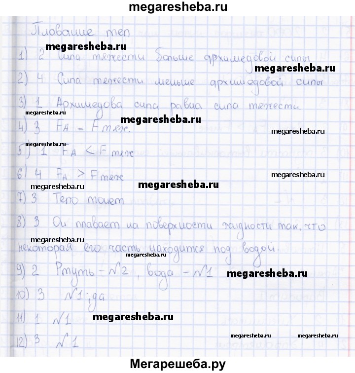 ГДЗ по физике 7 класс Чеботарева тесты тема - Плавание тел