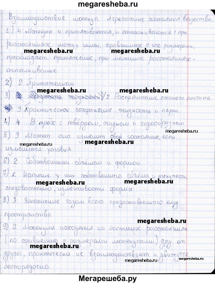 ГДЗ по физике 7 класс Чеботарева тесты тема - Взаимодействие молекул