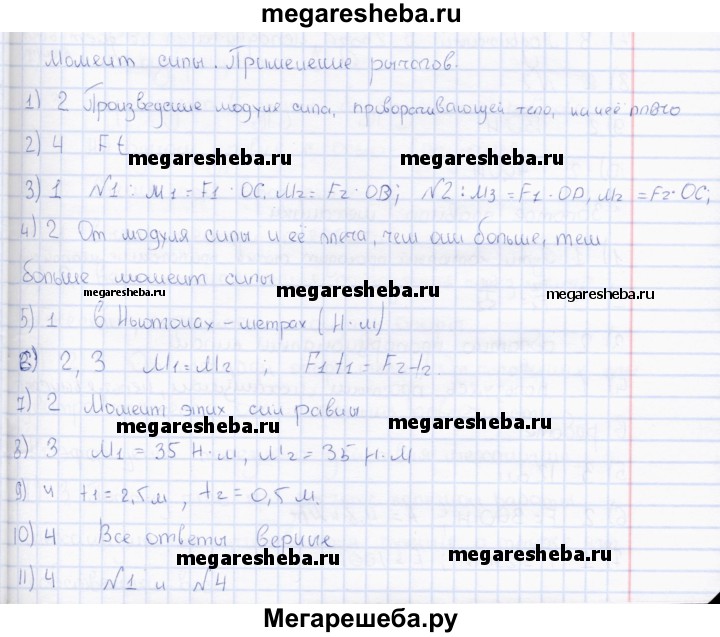 ГДЗ по физике 7 класс Чеботарева тесты тема - Момент силы