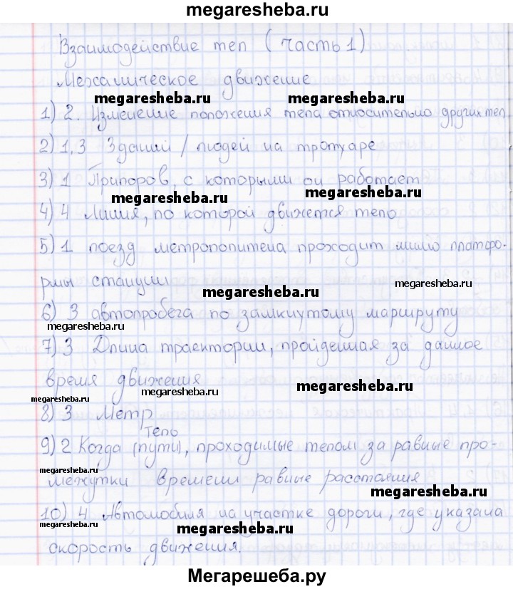 ГДЗ по физике 7 класс Чеботарева тесты тема - Механическое движение