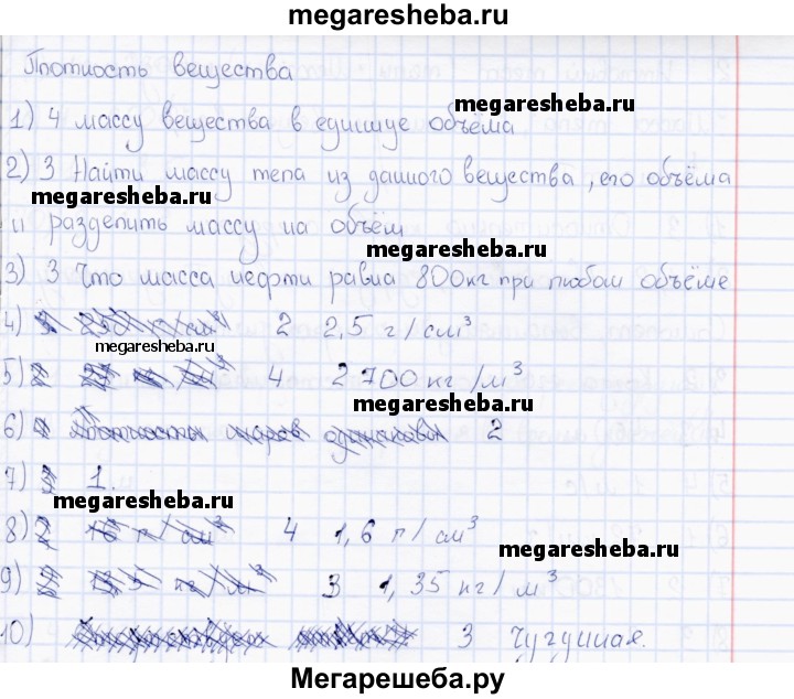 ГДЗ по физике 7 класс Чеботарева тесты тема - Плотность вещества