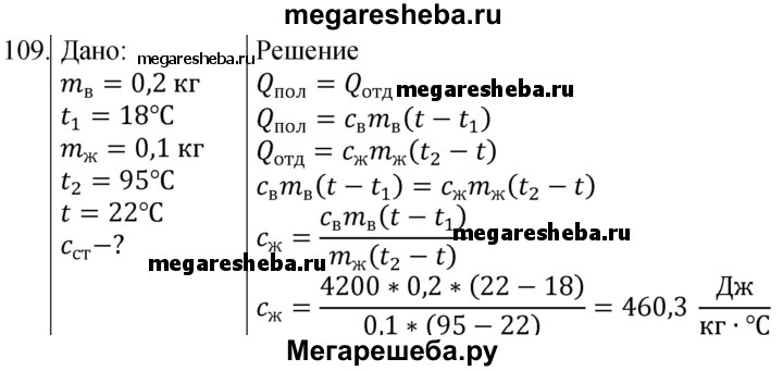 Подробный решебник (ГДЗ) по Физике за 8 (восьмой) класс сборник вопросов и задач - готовый ответ номер - 109. Авторы учебника: Марон, Марон, Позойский. Издательство: Просвещение 2022.