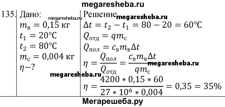 Подробный решебник (ГДЗ) по Физике за 8 (восьмой) класс сборник вопросов и задач - готовый ответ номер - 135. Авторы учебника: Марон, Марон, Позойский. Издательство: Просвещение 2022.