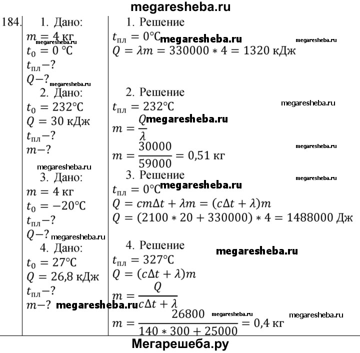 ГДЗ по физике 8 класс Марон сборник вопросов и задач номер - 184
