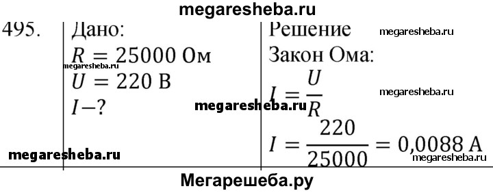 Подробный решебник (ГДЗ) по Физике за 8 (восьмой) класс сборник вопросов и задач - готовый ответ номер - 495. Авторы учебника: Марон, Марон, Позойский. Издательство: Просвещение 2022.
