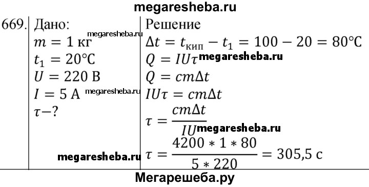 Подробный решебник (ГДЗ) по Физике за 8 (восьмой) класс сборник вопросов и задач - готовый ответ номер - 669. Авторы учебника: Марон, Марон, Позойский. Издательство: Просвещение 2022.