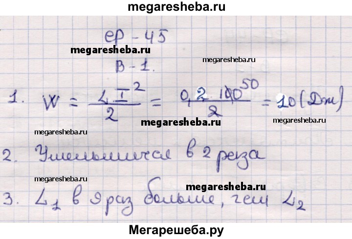 Подробный решебник (ГДЗ) по Физике за 9 (девятый) класс контрольные и самостоятельные работы - готовый ответ самостоятельные работы СР-45. вариант - 1. Авторы учебника: Громцева. Издательство: Экзамен 2017.