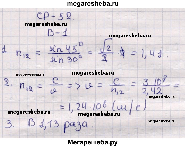 Подробный решебник (ГДЗ) по Физике за 9 (девятый) класс контрольные и самостоятельные работы - готовый ответ самостоятельные работы СР-52. вариант - 1. Авторы учебника: Громцева. Издательство: Экзамен 2017.