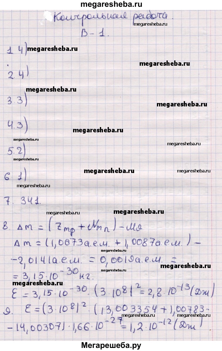 ГДЗ по физике 9 класс Громцева контрольные и самостоятельные работы контрольные работы КР-5. вариант - 1