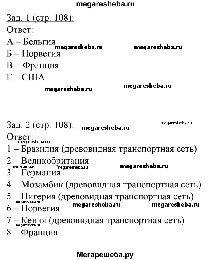 Подробный решебник (ГДЗ) по Географии за 10‐11 (десятый‐одиннадцатый) класс рабочая тетрадь - готовый ответ часть 1. страница - 108. Авторы учебника: Домогацких, Домогацких, Базовый уровень. Издательство: Русское слово 2016.