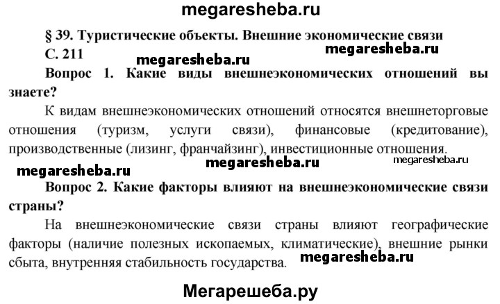 ГДЗ по географии 11 класс Бейсенова страница - 211