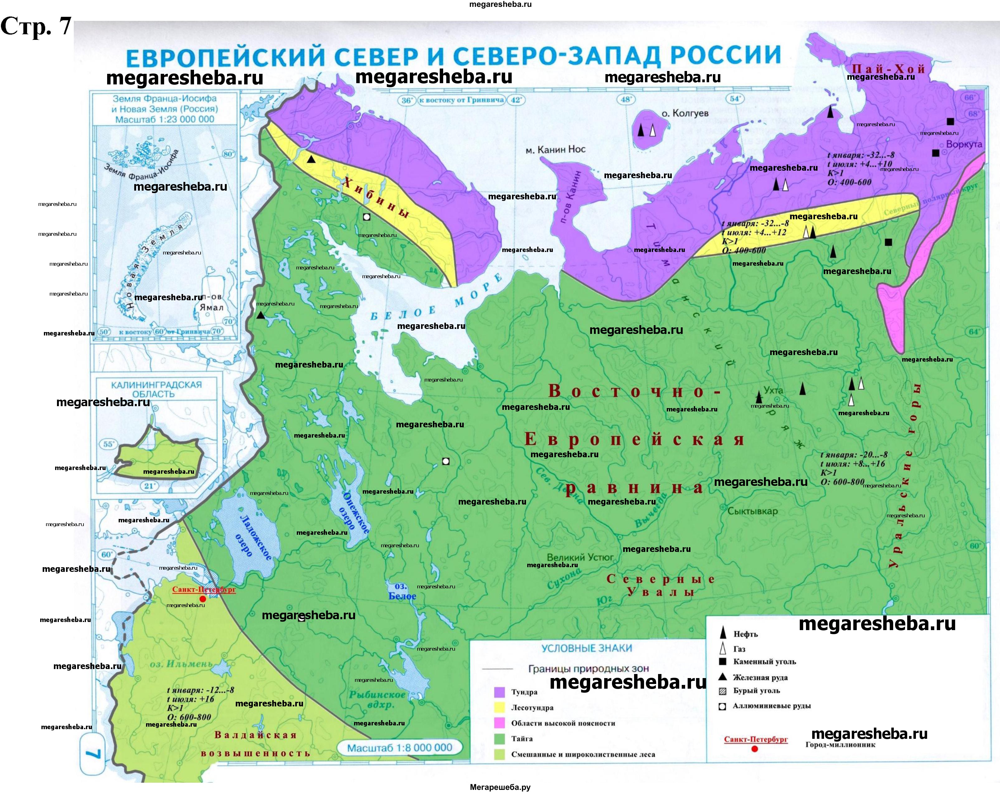 Подробный решебник (ГДЗ) по Географии за 8 (восьмой) класс атлас с контурными картами - готовый ответ контурные карты - стр.7. Авторы учебника: Курбский, Приваловский, Новотоцких. Издательство: Просвещение 2021-2023.