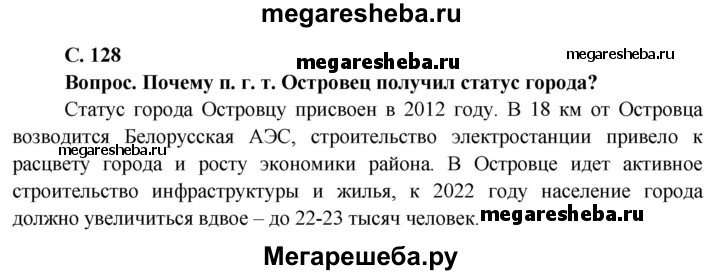 Подробный решебник (ГДЗ) по Географии за 9 (девятый) класс - готовый ответ страница - 128. Авторы учебника: Брилевский, Климович. Издательство: Образование и воспитание 2019.
