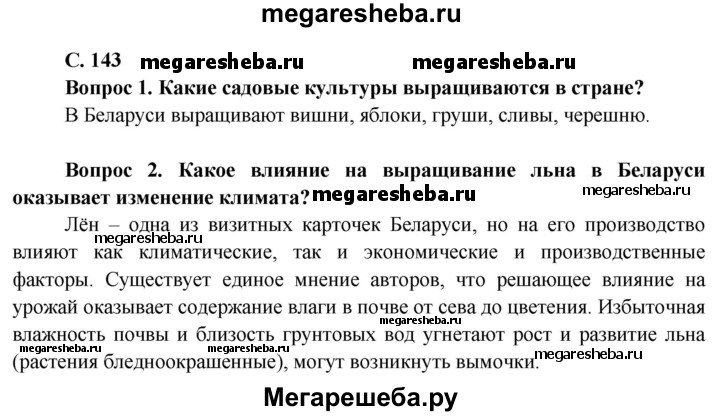 Подробный решебник (ГДЗ) по Географии за 9 (девятый) класс - готовый ответ страница - 143. Авторы учебника: Брилевский, Климович. Издательство: Образование и воспитание 2019.