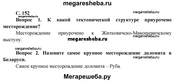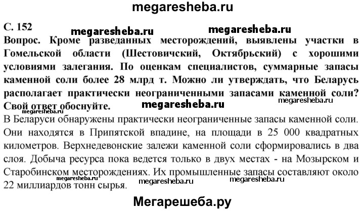 Подробный решебник (ГДЗ) по Географии за 9 (девятый) класс - готовый ответ страница - 152. Авторы учебника: Брилевский, Климович. Издательство: Образование и воспитание 2019.