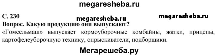 Подробный решебник (ГДЗ) по Географии за 9 (девятый) класс - готовый ответ страница - 230. Авторы учебника: Брилевский, Климович. Издательство: Образование и воспитание 2019.