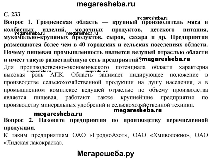 Подробный решебник (ГДЗ) по Географии за 9 (девятый) класс - готовый ответ страница - 233. Авторы учебника: Брилевский, Климович. Издательство: Образование и воспитание 2019.