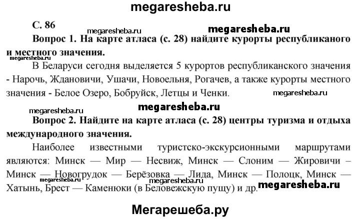 Подробный решебник (ГДЗ) по Географии за 9 (девятый) класс - готовый ответ страница - 86. Авторы учебника: Брилевский, Климович. Издательство: Образование и воспитание 2019.