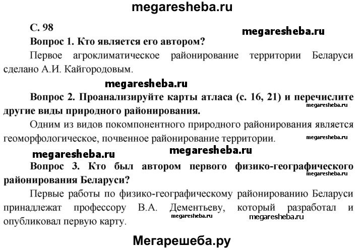 Подробный решебник (ГДЗ) по Географии за 9 (девятый) класс - готовый ответ страница - 98. Авторы учебника: Брилевский, Климович. Издательство: Образование и воспитание 2019.