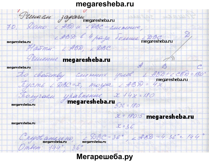 Подробный решебник (ГДЗ) по Геометрии за 7 (седьмой) класс рабочая тетрадь - готовый ответ упражнение - 70. Авторы учебника: Мерзляк, Полонский, Якир. Издательство: Вентана-граф 2017-2022.