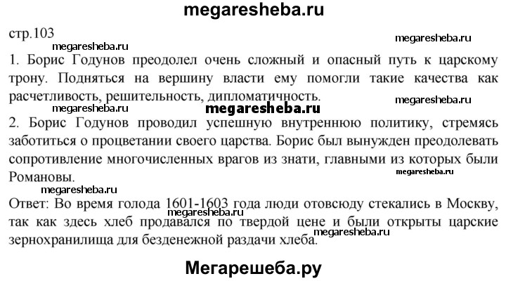 Подробный решебник (ГДЗ) по Истории за 7 (седьмой) класс - готовый ответ страница - 103. Авторы учебника: Мединский, Торкунов. Издательство: Просвещение 2025.