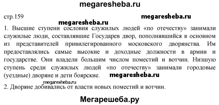 Подробный решебник (ГДЗ) по Истории за 7 (седьмой) класс - готовый ответ страница - 159. Авторы учебника: Мединский, Торкунов. Издательство: Просвещение 2025.