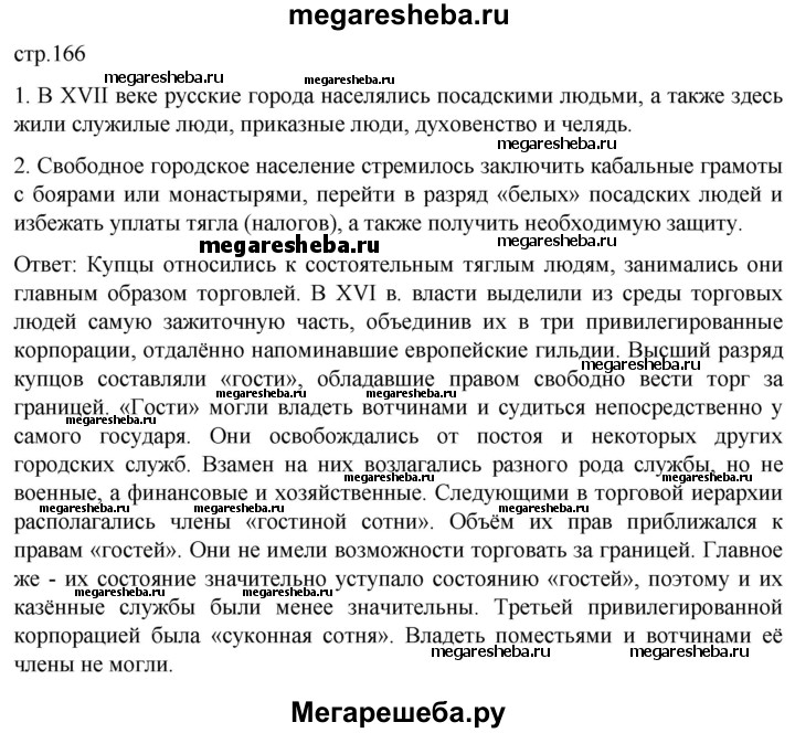 Подробный решебник (ГДЗ) по Истории за 7 (седьмой) класс - готовый ответ страница - 166. Авторы учебника: Мединский, Торкунов. Издательство: Просвещение 2025.