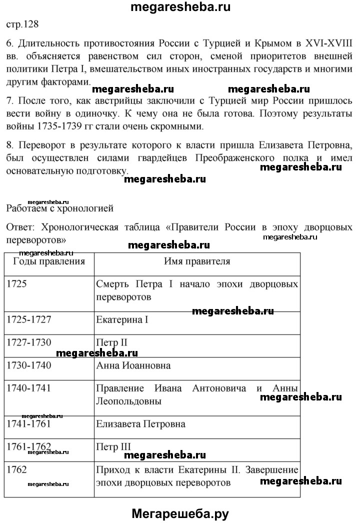 Подробный решебник (ГДЗ) по Истории за 8 (восьмой) класс - готовый ответ страница - 128. Авторы учебника: Мединский, Торкунов. Издательство: Просвещение 2025.