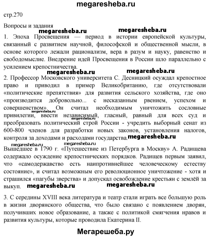 Подробный решебник (ГДЗ) по Истории за 8 (восьмой) класс - готовый ответ страница - 270. Авторы учебника: Мединский, Торкунов. Издательство: Просвещение 2025.