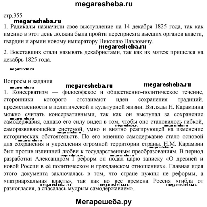 Подробный решебник (ГДЗ) по Истории за 8 (восьмой) класс - готовый ответ страница - 355. Авторы учебника: Мединский, Торкунов. Издательство: Просвещение 2025.