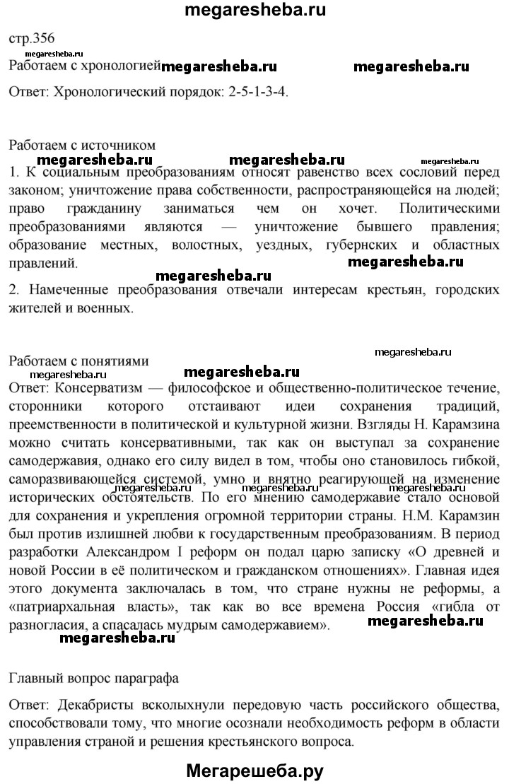 Подробный решебник (ГДЗ) по Истории за 8 (восьмой) класс - готовый ответ страница - 356. Авторы учебника: Мединский, Торкунов. Издательство: Просвещение 2025.