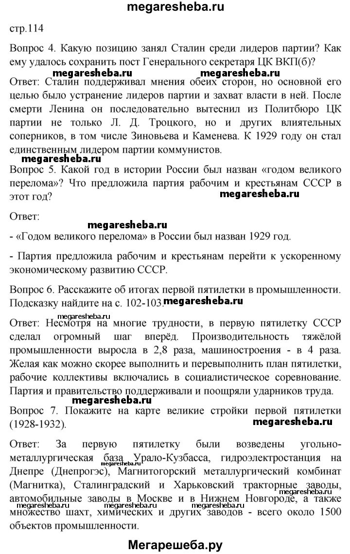 Подробный решебник (ГДЗ) по Истории за 9 (девятый) класс - готовый ответ страница - 114. Авторы учебника: Бгажнокова, Смирнова, Карелина, Для обучающихся с интеллектуальными нарушениями. Издательство: Просвещение 2021.