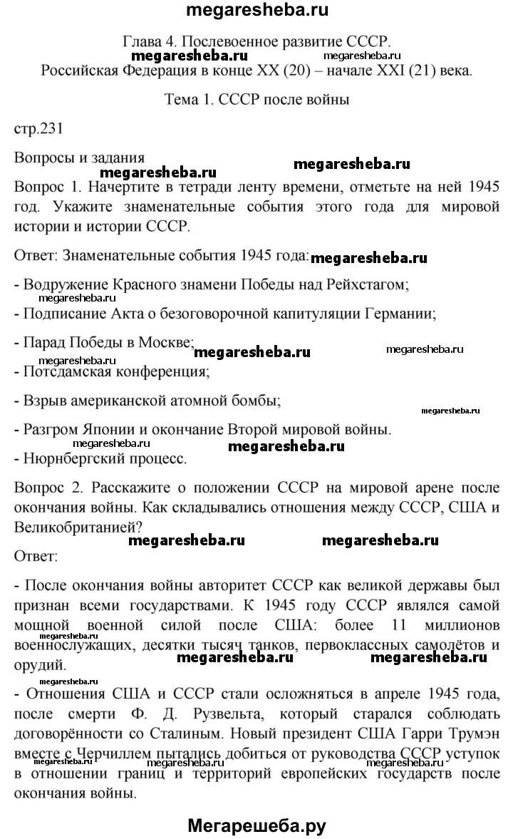 Подробный решебник (ГДЗ) по Истории за 9 (девятый) класс - готовый ответ страница - 231. Авторы учебника: Бгажнокова, Смирнова, Карелина, Для обучающихся с интеллектуальными нарушениями. Издательство: Просвещение 2021.