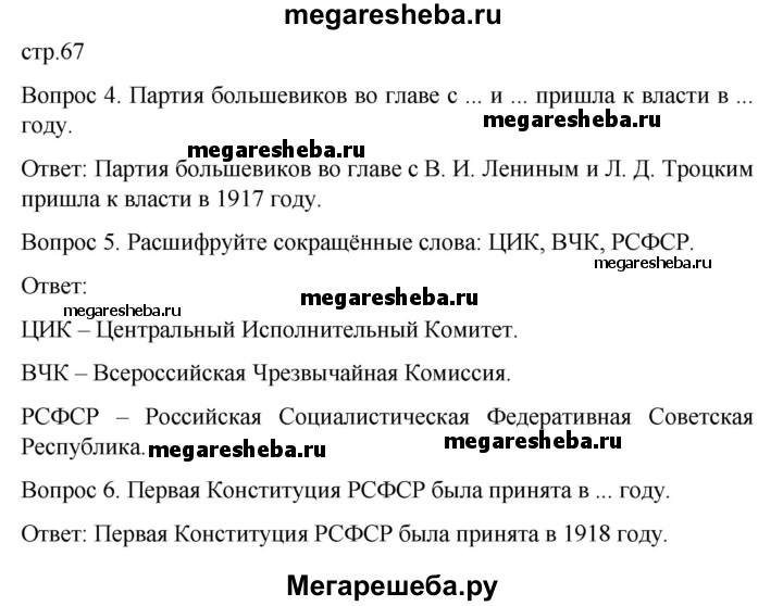 Подробный решебник (ГДЗ) по Истории за 9 (девятый) класс - готовый ответ страница - 67. Авторы учебника: Бгажнокова, Смирнова, Карелина, Для обучающихся с интеллектуальными нарушениями. Издательство: Просвещение 2021.