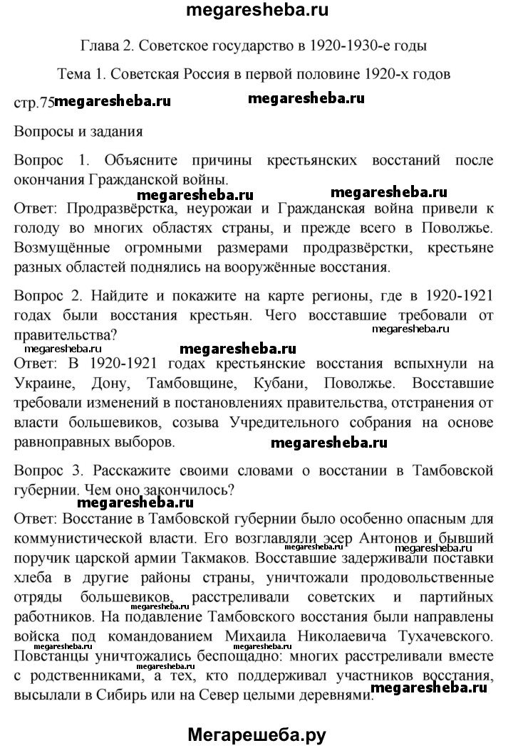 Подробный решебник (ГДЗ) по Истории за 9 (девятый) класс - готовый ответ страница - 75. Авторы учебника: Бгажнокова, Смирнова, Карелина, Для обучающихся с интеллектуальными нарушениями. Издательство: Просвещение 2021.