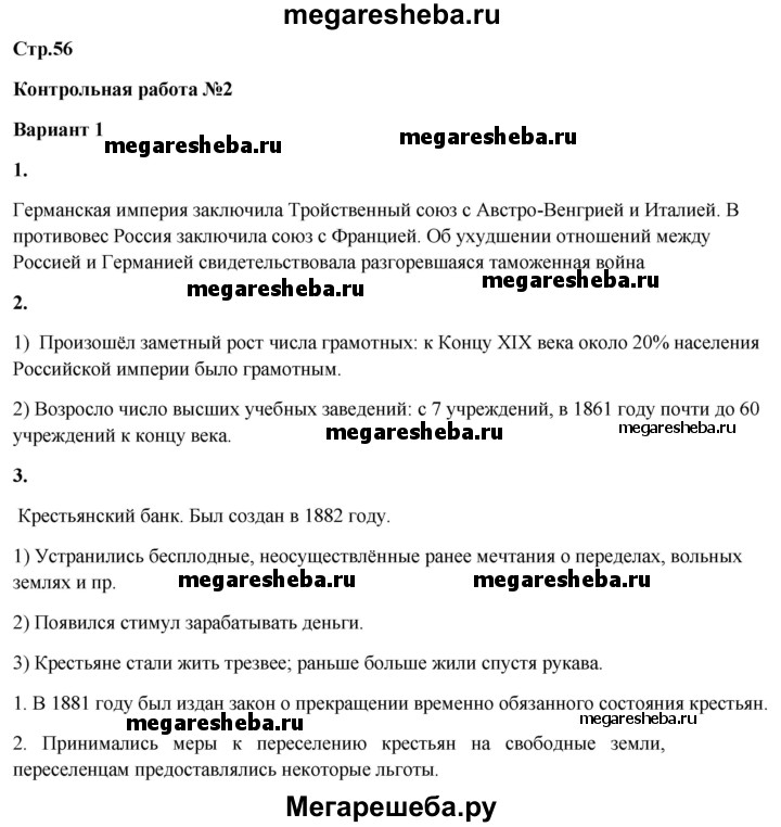 Подробный решебник (ГДЗ) по Истории за 9 (девятый) класс контрольные работы - готовый ответ страница - 56. Авторы учебника: Артасов. Издательство: Просвещение 2019.