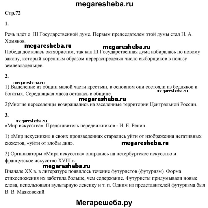 Подробный решебник (ГДЗ) по Истории за 9 (девятый) класс контрольные работы - готовый ответ страница - 72. Авторы учебника: Артасов. Издательство: Просвещение 2019.