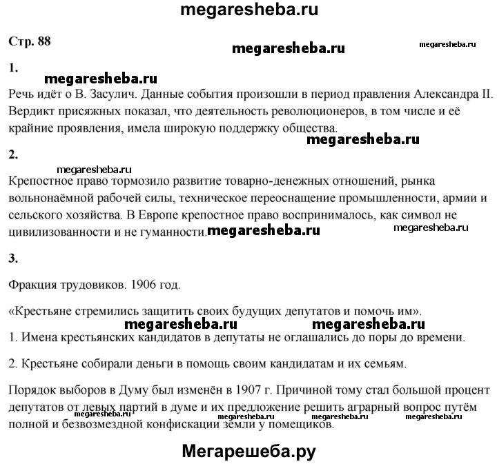 Подробный решебник (ГДЗ) по Истории за 9 (девятый) класс контрольные работы - готовый ответ страница - 88. Авторы учебника: Артасов. Издательство: Просвещение 2019.