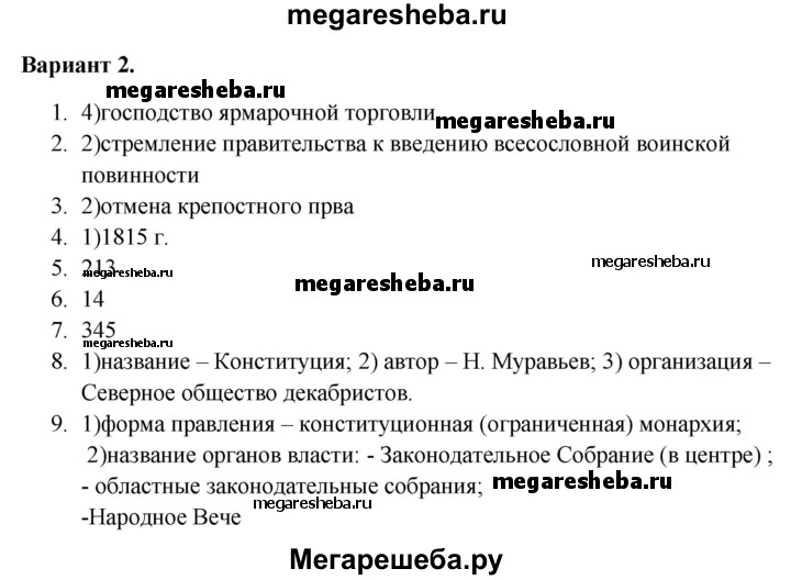 ГДЗ по истории 9 класс Артасов тематический контроль тема 1 СР-3 - Вариант 2
